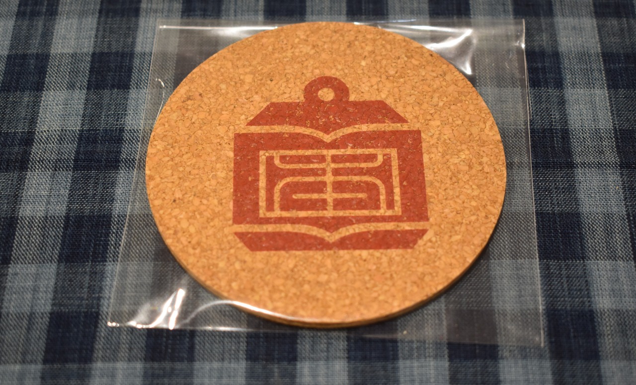 本居宣長記念館オリジナル・鈴のロゴが入ったコルクのコースター4枚セットです。